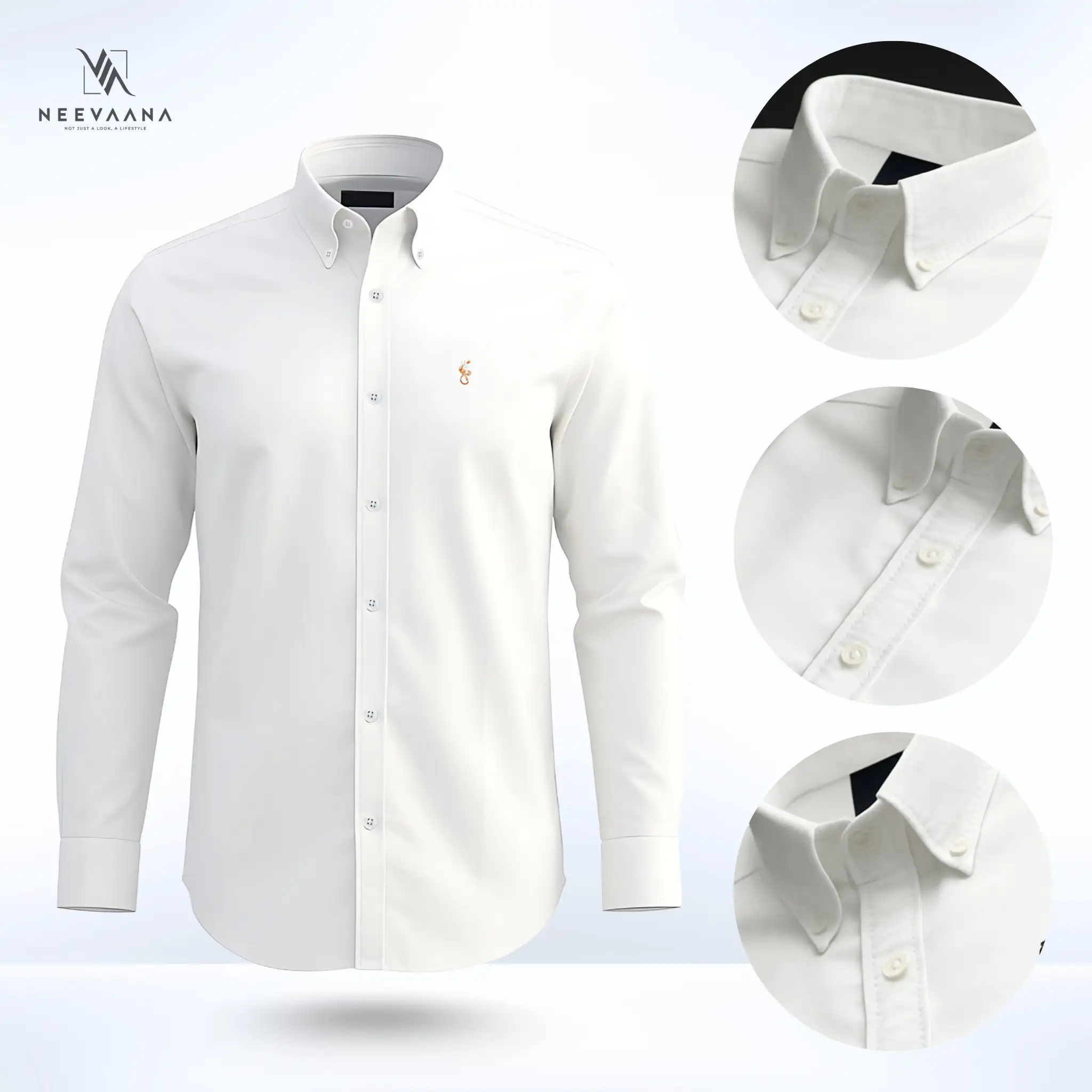 - Full-sleeved, button-down style in solid rich white